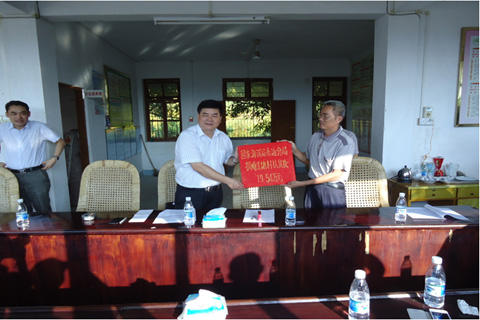 成纯发局长(左二)向莲塘村捐赠扶贫款