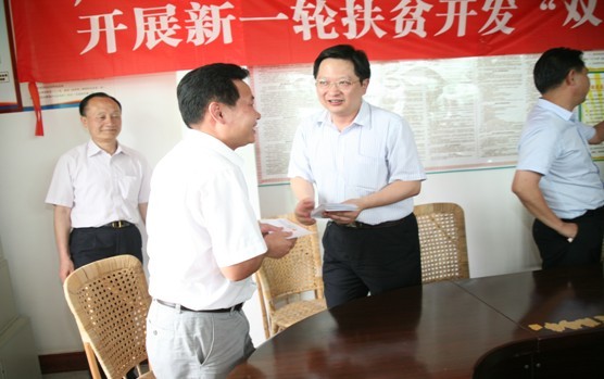 本网讯 6月15日,广州市人社局党委副书记黄远飞率该局新一轮扶贫开发工作领导小组及驻村干部,前往兴宁市坭陂镇宣明村进行新一轮扶贫开发工作对接,并与该村“两委”干部就新一轮扶贫开发工作开展进行了座谈。该局副巡视员廖翔达、局属中国南方人才市场主任盛南方、党委办公室主任吴东秋和兴宁市委常委、常务副市长何志平、扶贫局局长罗胜文等领导一同参加了对接座谈会。