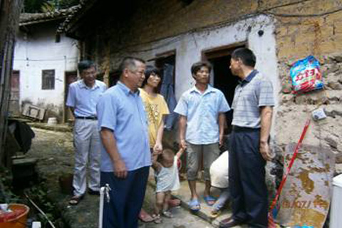 广东机电职业技术学院院长陈光潮(右1)、副院长王勇(后左1)慰问贫困户。