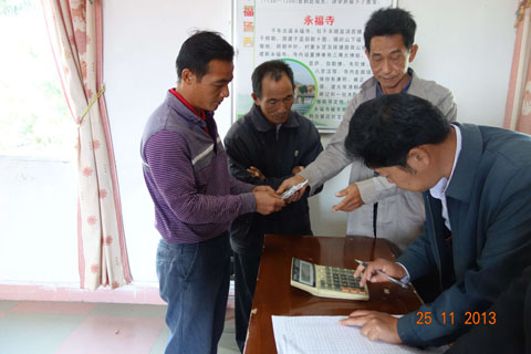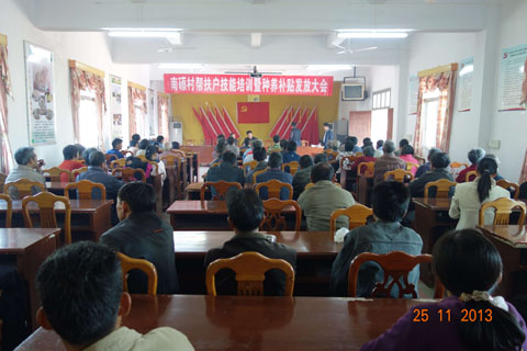 今年6月进驻丰顺县汤西镇南礤村后,省国土资源厅为帮助南礤村73户帮扶户提高家庭经济收入,共自筹2013年度对户帮扶资金50.7万元,主要用于帮助73户帮扶户发展种养项目。为充分调动帮扶户种养积极性,防止出现“等、靠、要”思想,驻村工作组在入户调查时,明确要求各帮扶户先行发展生产后方能领取省国土资源厅的种养补贴,并制定了统一的补贴标准。11月初,驻村工作组通过到户走访、实地核查、拍照留底等形式,对73户帮扶户2013年度种养情况进行了调查摸底,并将调查情况在全村进行了公示,确保调查数据客观、真实。此次种养补贴发放坚持多劳多得、少劳少得、不劳不得的原则,对其中发展种养项目较多的帮扶户给予了较多的补贴,对其中7户没有发展种养项目的帮扶户没有给予补贴,切实有效调动了帮扶户脱贫的积极性。