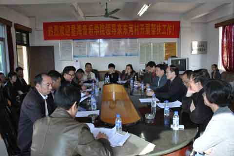 在村委会会议室,到访的星海音乐学院对接帮扶干部与镇、村干部进行了座谈。东河村主任赖永茂介绍了本村的基本情况以及村集体和贫困户的脱贫需求。元善镇镇长余嘉臣对星海音乐学院扎实的帮扶工作表示感谢,对完成今后的帮扶任务提出了良好的建议。星海音乐学院党委副书记王兴岱要求对接帮扶干部发扬党的优良传统,坚持走群众路线,多了解社情民情,多为贫困地区和贫困家庭做好事实事,帮助贫困村和贫困户早日走上脱贫致富之路。