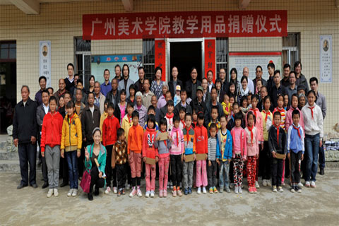 李月副书记首先介绍了此行的目的,并代表学校对县、镇、村三级领导给予广州美术学院帮扶工作的大力支持表示了衷心感谢。她指出,广州美术学院与永光村的结对互助是难得的缘分,广州美术学院党政领导一贯高度重视扶贫“双到”工作,学校师生对帮扶工作予以了积极的关注和支持,在今后的结对互助过程中,广州美术学院将与永光村一道,集思广益,为永光村早日迈上致富奔小康的道路共同努力。随后,李月代表学校向永光小学全体同学捐赠校服150余套。吴卫光副院长代表学校向永光小学捐赠书籍一批,共1139册,价值2.2万元,购书款项由吴卫光副院长个人捐助。