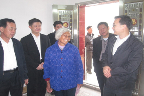 陆建明书记非常关心贫困户的生产、生活情况,第一时间来到村里贫困户中的“堡垒”户赖二妹家中,详细了解了她的生活情况,对她为中国的革命事业做出贡献表示感谢,并要求驻村工作组要研究制定具有针对性的个案帮扶措施,确保为中国的革命事业做出贡献的“堡垒”户早日脱贫。同时对村里的低保户、五保户进行了慰问。