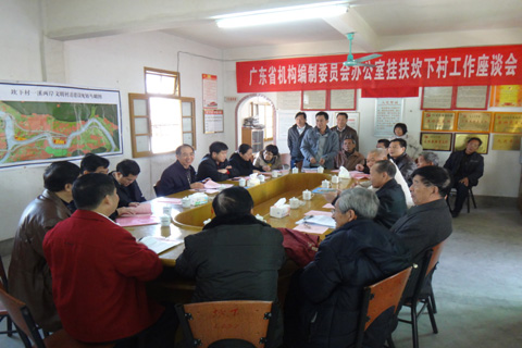 陈华江副主任在听取情况介绍后指出,一是要继续推进坎下村帮扶项目建设。目前,村庄村道绿化、农家书屋装修工作已经完成,罗明故居及纪念公园建设正在有序进行,生态综合场已投入使用,村集体养鸡即可销售,总体上各帮扶项目进展顺利,为下一步扶贫工作打下了坚实基础。二是要继续探索扶贫致富路子。结合村现状,探索新路子,既确保完成规定动作,又尽最大努力推进自选动作。请县、镇、村领导同志多指导、多提意见、多出点子,驻村工作组应继续虚心求教,并拿出需要省编办出面沟通事项的清单。三是要继续做实扶贫工作。驻村工作组同志精神面貌好,能真正沉下去与群众打成一片,坚持扶贫不搞虚招、假招、花招,努力学习带动村民致富本事,希望继续保持这种扎实的工作作风,继续做实做好扶贫工作。