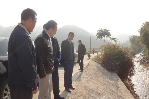 学院领导与镇、村干部一起察看村河道整修工程