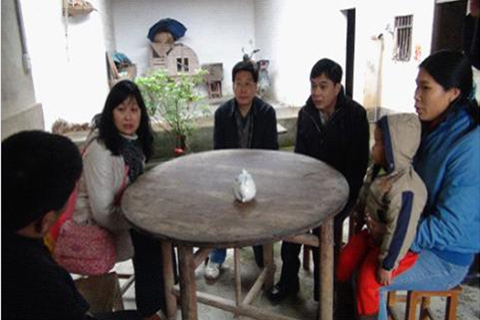 在葛藤村,省经信委机关33个处室、7个直属(代管)单位帮扶责任人冒着寒风细雨,步行前往各对口挂钩贫困户家中,了解帮扶需求,为每户贫困户送上1000元生产帮扶资金。