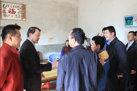 回到村委会,王省良同当地县、镇、村三级干部围坐在暖和的太阳下,愉快地聊起了大崀村的发展。听取大崀村村支书李金兴、学校驻村干部焦贵荣等的情况介绍,与大家充分交流意见后,王省良指出,落实省里扶贫开发“双到”任务,是贯彻党的十八届三中全会的要求。《中共中央关于全面深化改革若干重大问题的决定》专门有一段提到要“赋予农民更多财产权利”,读来令人感动。做好扶贫开发“双到”工作,既要“输血”,又要“造血”,大力发展桑蚕家禽养殖业和特色适宜中药种植业,努力壮大村集体经济。“将来村民种中药,我们联系企业回购。这样适销对路,村民才不会吃亏。”王省良表示,学校会利用现有资源,落实好省里布置的扶贫开发“双到”任务,争取扶贫一个村、带动一个镇、辐射一个县,帮助地方经济发展和社会建设,让广大群众共享红利、得到实惠。