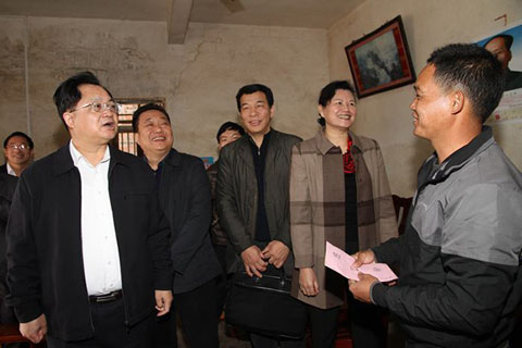 骆文智强调,扶贫攻坚,民心所向,责任重大,省卫生计生委将认真落实省委、省政府的决策部署,突出重点、抓住关键,统筹协调,切实解决贫困户的实际困难,将扶贫开发“双到”工作各项任务落实好、完成好。骆文智希望,贫困家庭要坚定战胜贫困、脱贫致富的信心和勇气,不等不靠,与各级党委、政府以及帮扶工作队一起努力,共同改变落后的面貌,建设美好家园。