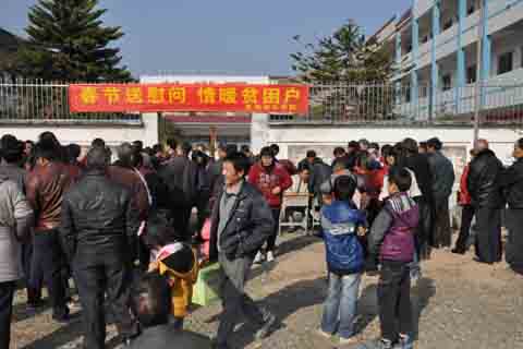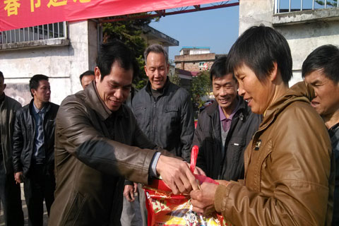 18日上午9时,驻村工作组苏雄、罗干两位同志和村委主任赖永茂等村干部、社长们一起在东河村小学操场,召集贫困户开展了以“春节送慰问,情暖贫困户”主题的慰问活动。慰问前,驻村工作组组长苏雄同志向早早来到现场的贫困户们转达了学院领导的慰问和新春祝福,并说明本次发放的资助金及慰问品来自于学院师生员工的爱心捐款,希望他们积极发展生产,共同努力,尽早脱贫致富。随后,现场为166户贫困户发放了现金和慰问品。村民们非常高兴,纷纷表示,非常感谢星海音乐学院领导和师生的关心和帮助,他们将克服困难,自力更生,争取早日脱贫致富,过上幸福美满的生活。