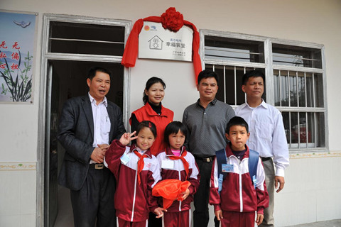 刚刚启用的“幸福厨房”面目一新,配置了电蒸饭柜、电磁炉、电饭煲、消毒柜等电器,正煮着志愿者们和留守学生共同包好的“爱心饺”;刚刚启用的“幸福饭堂”干净整洁,志愿者们正耐心地教学生们包饺子。坐在杨志欣书记怀里的张引婷小朋友幸福而骄傲地说道:“以后中午也可以吃上热饭热菜了,真好!”
