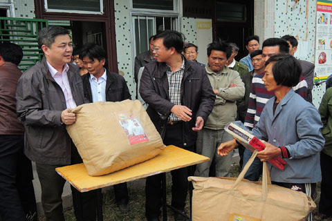 会后,麦青副总经理一行将抗灾救灾装备移交给村集体,并与扶贫驻村工作组、村干部一起将慰问品逐一发放给贫困户代表。麦青副总经理还实地查看了赤坭山村小学新校址建设工地和村农业合作社。
