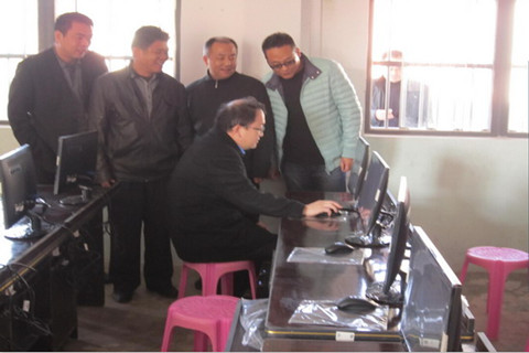 早上9点,在丰顺县副县长刘超平、潘田镇镇长王象山等县、镇领导的陪同下,屈哨兵局长一行来到集群小学,查看前期帮扶捐建的多媒体电教室的建设情况并举行了简单而隆重的揭幕仪式。为进一步改善村属小学的办学条件,让现代化教育走进山区,屈哨兵局长此行为集群小学带来了全新联想电脑20台,并在现场进行了安装试用。至今为止,广州市教育局已总计投入43.8万元对集群小学的校园安全、教育设备、师资培训等各方面进行完善。屈哨兵局长表示一定要继续做好教育帮扶工作,让山区的孩子们也能在阳光下茁壮成长。随后,屈哨兵一行来到刚刚竣工的水泥硬底化村道——富民路,并与县、镇、村各级领导干部一起为富民路路碑进行揭幕。该村道连接两条自然村全长3公里,包括路基建设与村道硬底化,工程总造价127万元。广州市教育局通过单位自筹,协调社会力量,发动本村乡贤捐款等方式,顺利补足资金缺口,该项工程为沿途1600多名村民的出行难问题得到彻底解决。