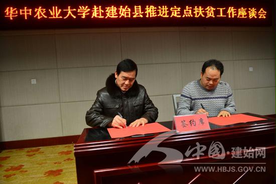 2012年11月,国务院扶贫办、中组部、教育部等8部委联合行文,确定华中农业大学定点帮扶建始县。2013年3月21日华中农业大学与建始县签订“校地战略协议”,华农大把自身科教人才优势和建始自然优势、人文优势紧密结合,量身定制”出制定农业产业发展规划、选派干部到建始县挂职、开展农业人才培训、进行支教活动、开展人才教育培养、实施科技项目、开展农业科技成果定向推介和搭建项目争取平台“八大” 帮扶规划,致力于科教、产业和智力“三大”扶贫。