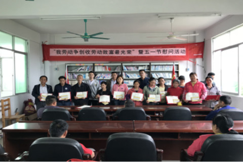 4月25日,值“五一”国际劳动节来临之际,广东省公共资源交易中心驻村工作队在对口扶贫村英德市横石塘镇前锋村委三楼开展“我劳动争创收劳动致富最光荣”的专题集中慰问活动,为积极参与前锋村扶贫车间劳动的在册建档立卡有劳动力的13户贫困户发放务工奖励。激发贫困户自觉投入到精准脱贫工作的内生动力,树立“先动手,后伸手、脱贫靠双手”的自强意识,引导贫困户由“要我脱贫”转变为“我要脱贫”,以表彰树先进,激励少部分仍存在“等靠要”思想的贫困户加入到“伸手要不如动手挣”务工行列当中。