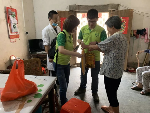 志愿者前往20户低保、五保等生活较为困难的贫困户家中进行慰问以及为行动不便的贫困户开展上门义诊。